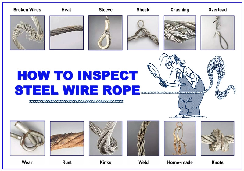 Rope damage usually occurs due to abrasion, corrosion, overloading, or poor storage. Recognizing early signs prevents accidents and prolongs rope life.