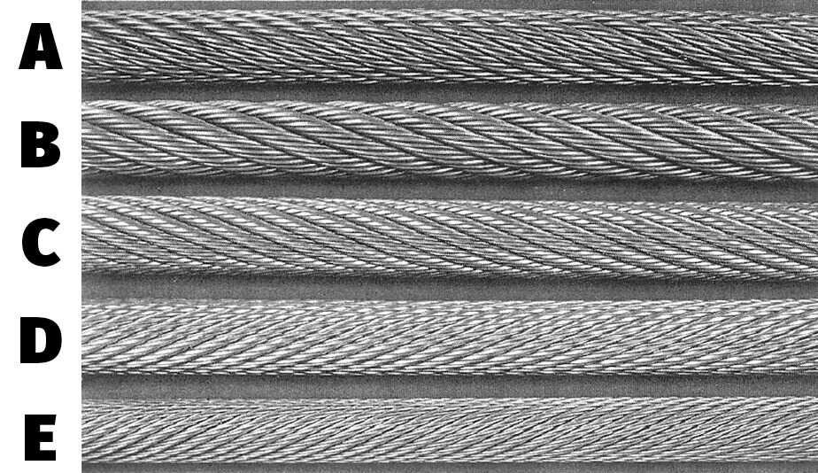 Class 19×7 rope uses 19 strands, and each strand contains 7 wires. These strands are arranged in layers.