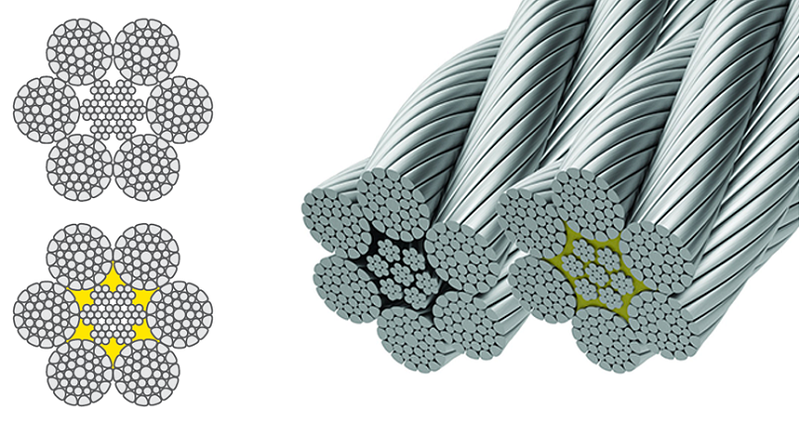 6x41WS+IWRC | Higher steel content, better crush and abrasion resistance. | High-tension winches, situations with high pressure on the drum. |