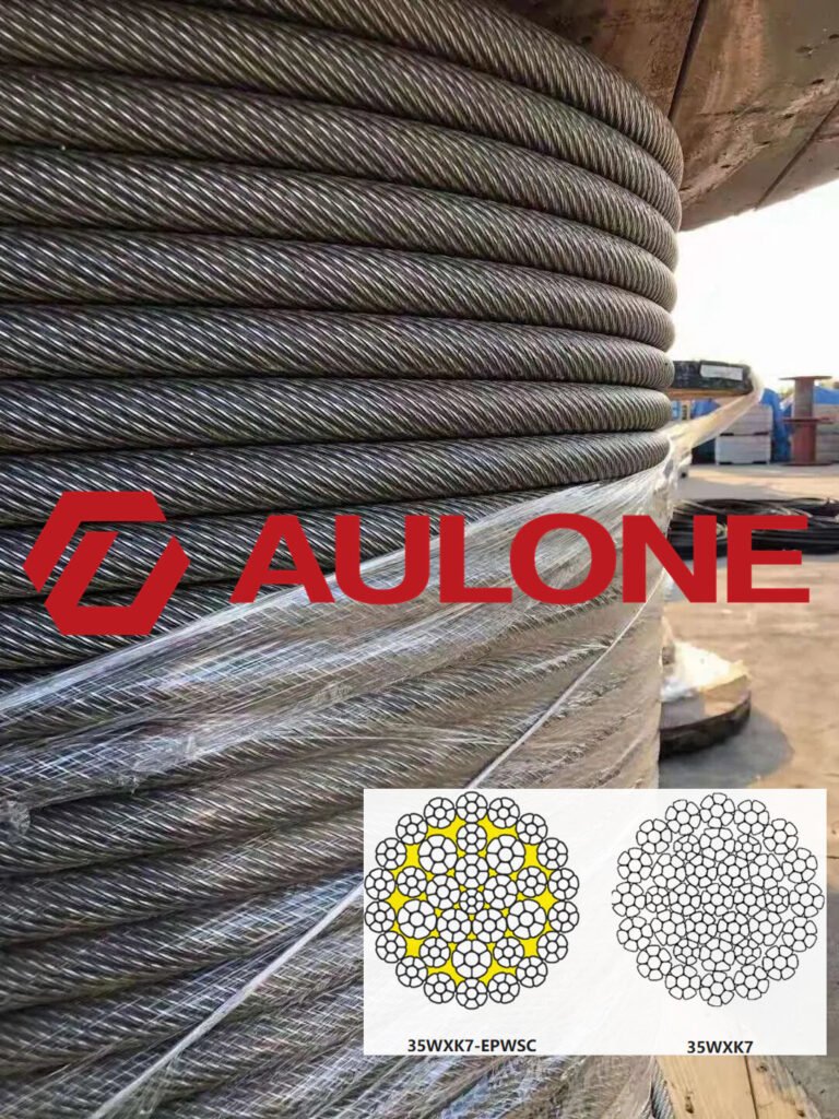 35WXK7-EPWSC has a plastic-impregnated core that blocks water, reduces internal wear, and keeps the rope stable in harsh lifting environments. Hot-dip galvanized coating adds extra corrosion resistance.